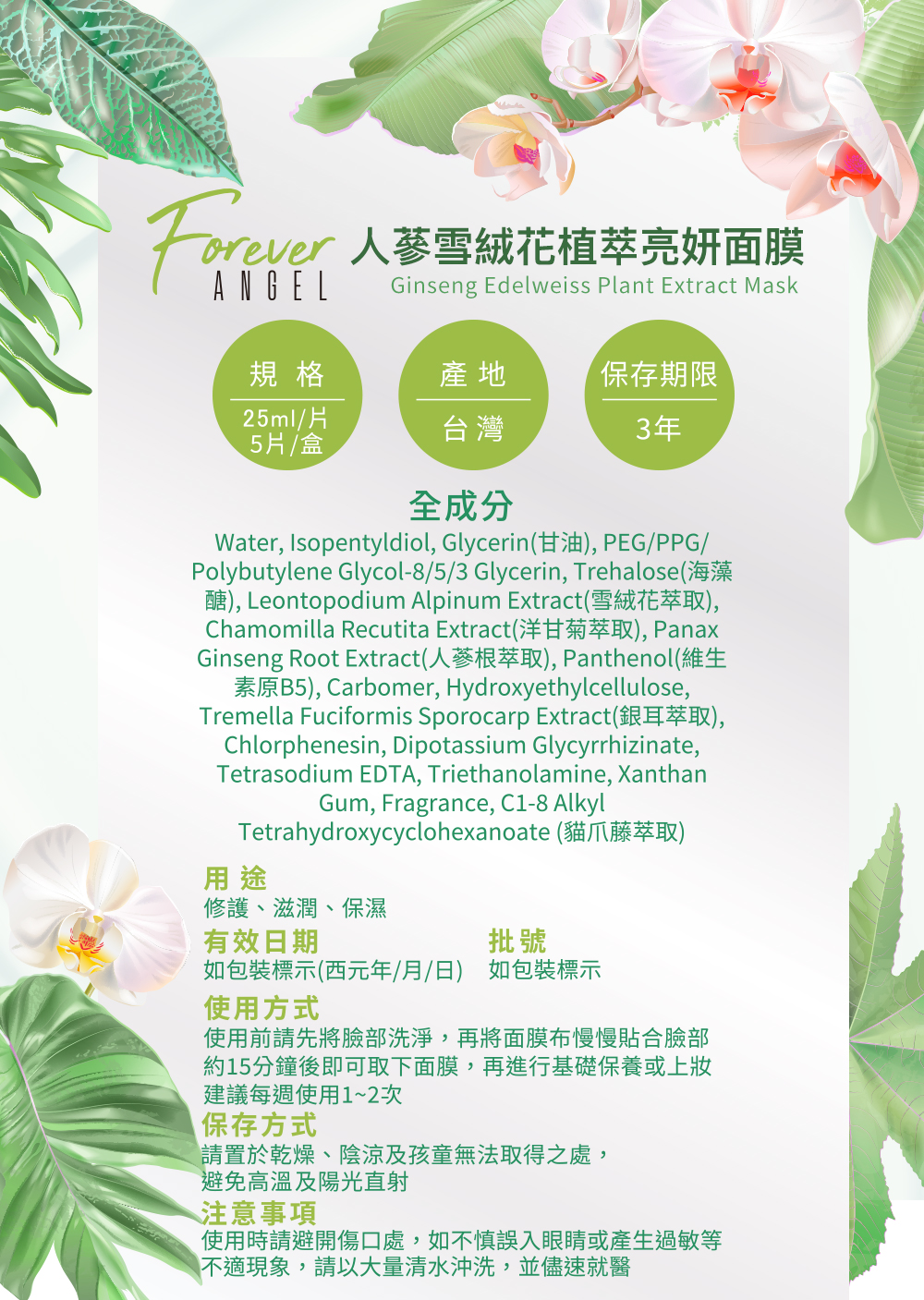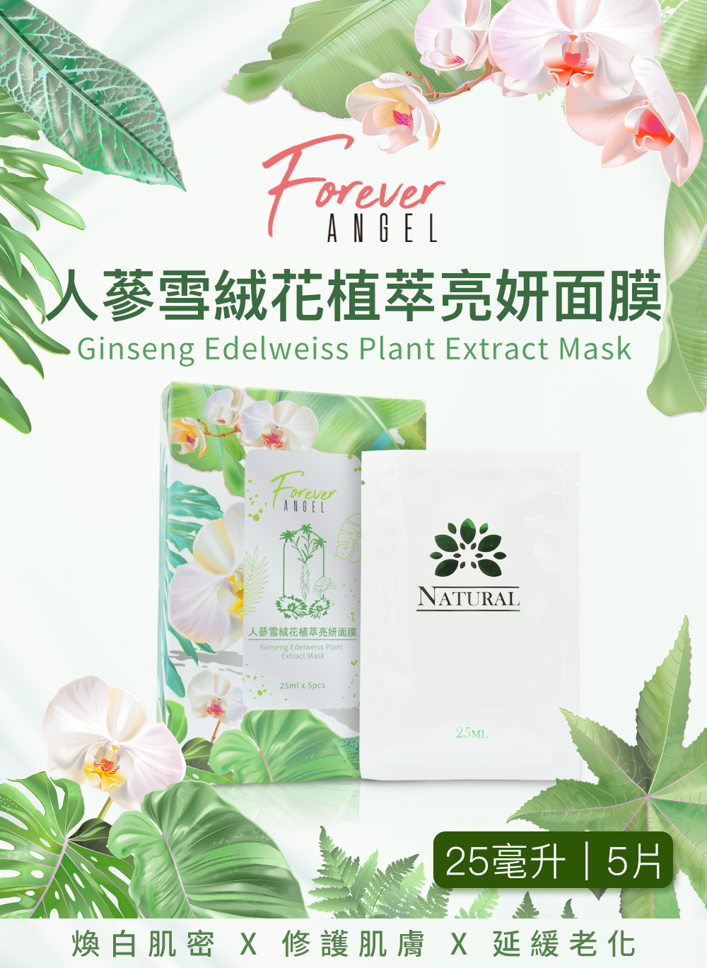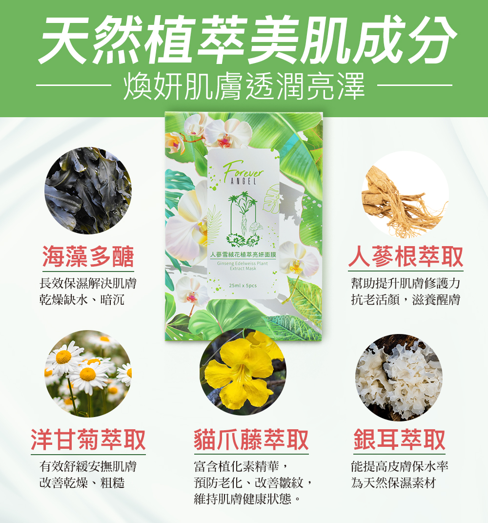 【Forever Angel】人蔘雪絨花植萃亮妍面膜(5片/盒)